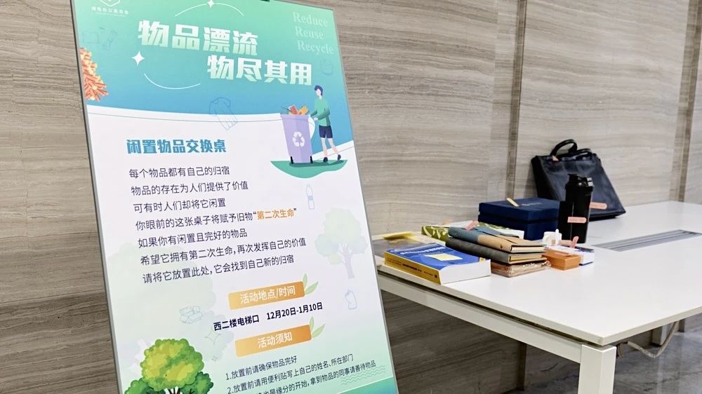 每个物品都有生命。为此,康恒人自发组织“物品漂移”行动,拿出自己的闲置物品交换,赋予物品“第二次生命”。倡议发出后,大家纷纷拿出闲置文具、书籍、日历摆放至物品漂流角。物品漂移不仅变废为宝,更能加强同事间关系。