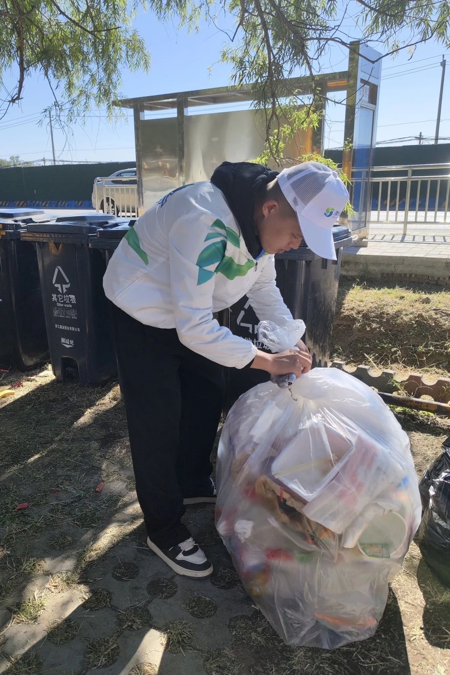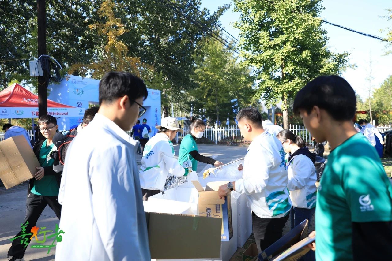站点垃圾分类倡导工作结束后,志愿者们又沿指定赛段,进行全长32KM的沿途赛道垃圾扫尾工作,确保“善行者”徒步全程零废弃。