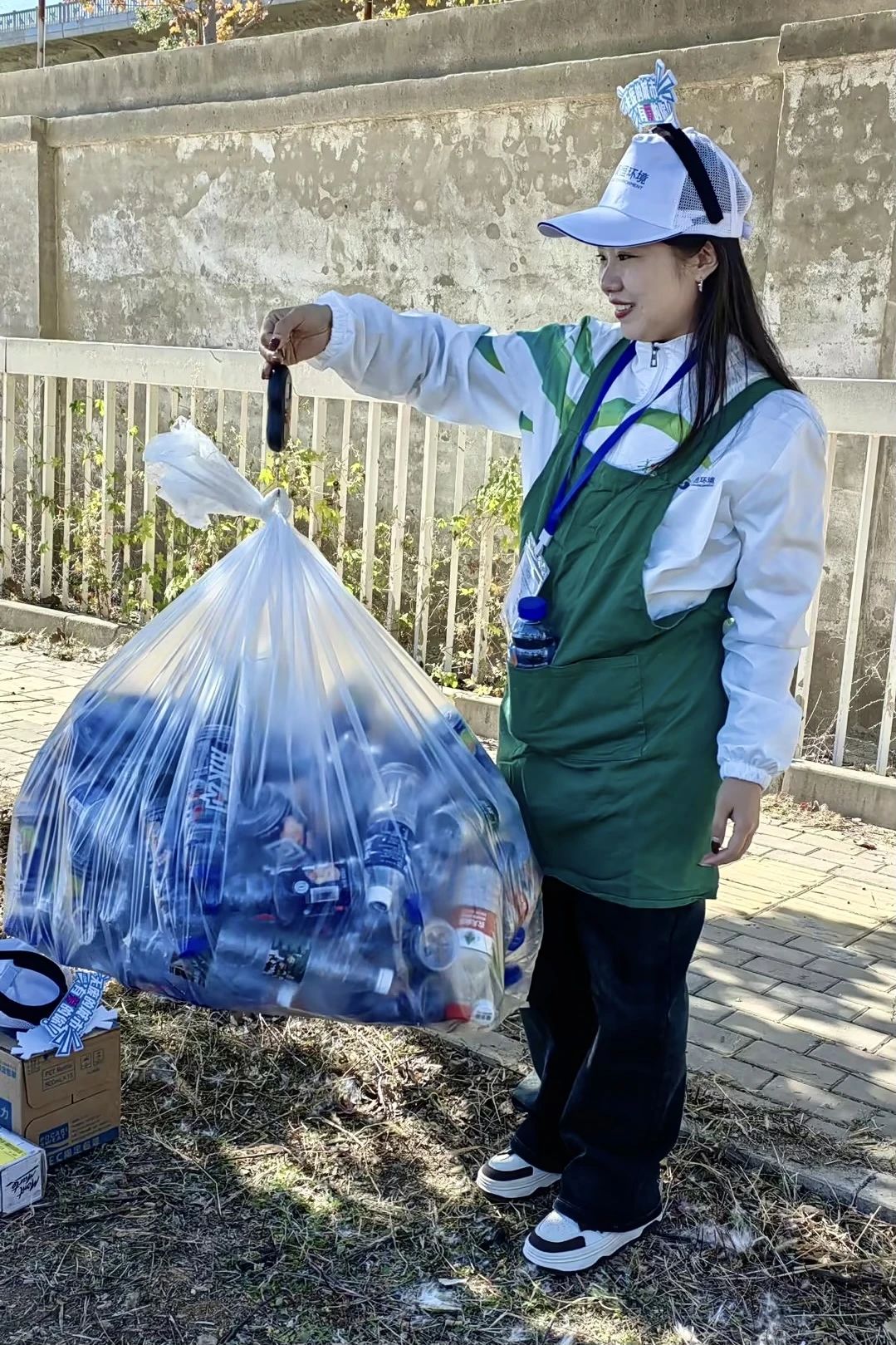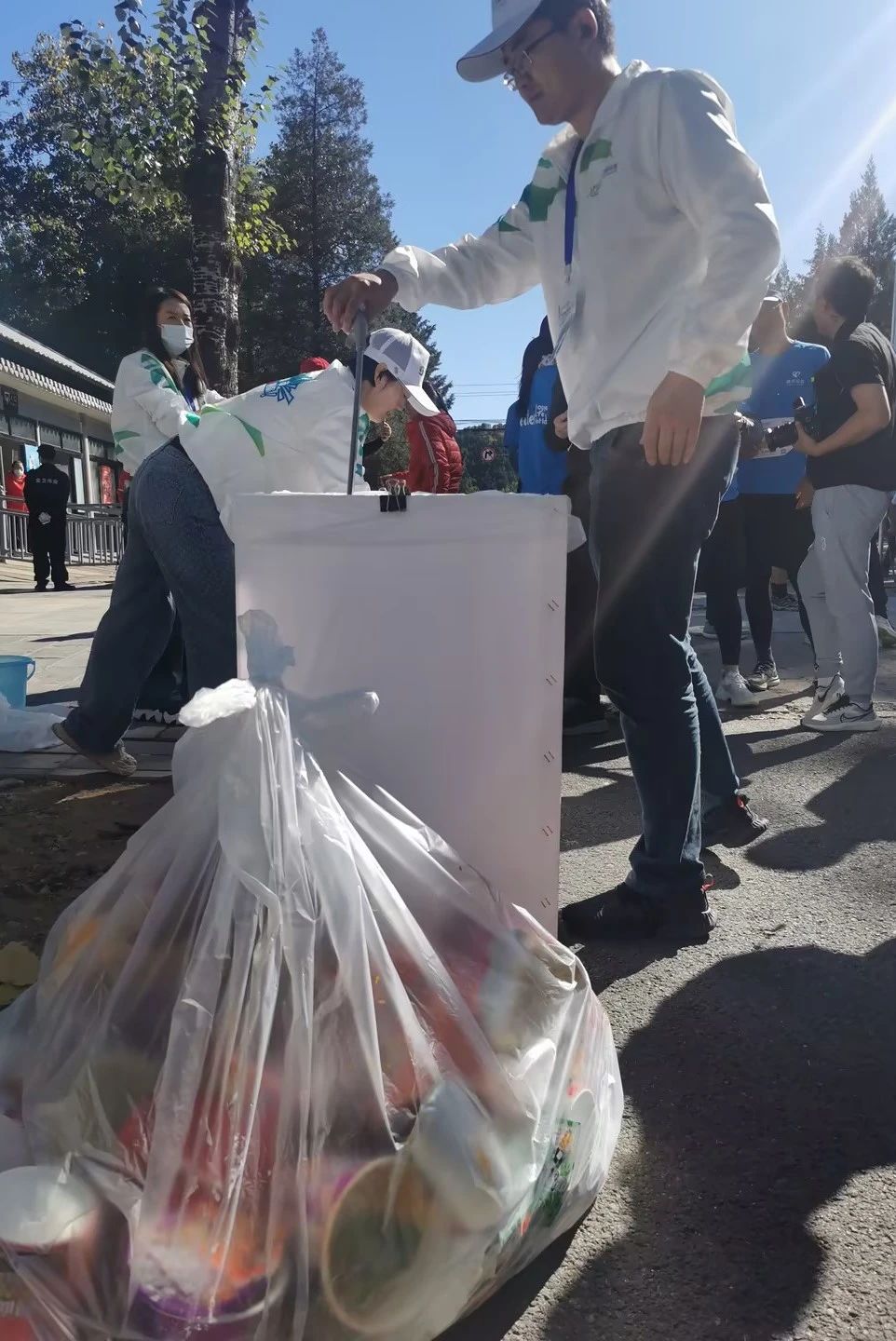 32KM的徒步路线设置了六个卡点,每个点位上都可以看见笑容可掬的康恒的志愿者,以饱满的热情迎接着参赛者。他们主动向途经的参赛者进行垃圾分类宣传,引导他们将喝过的水瓶、果皮纸屑等垃圾投放进正确垃圾分类箱内。
