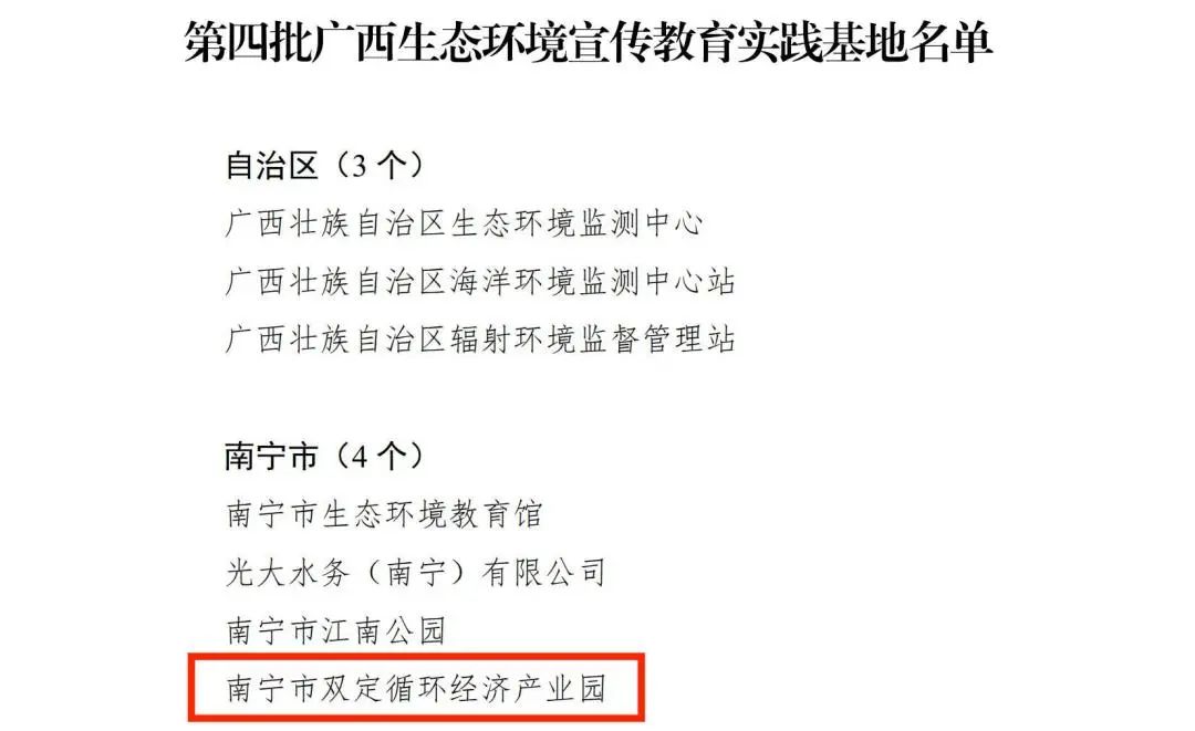 12月,南宁双定项目获评“第四批广西生态环境宣传教育实践基地”。