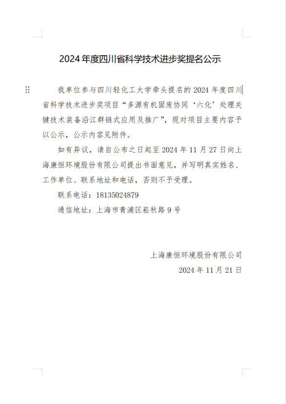 2024年度四川省科学技术进步奖提名公示内容文件如下: