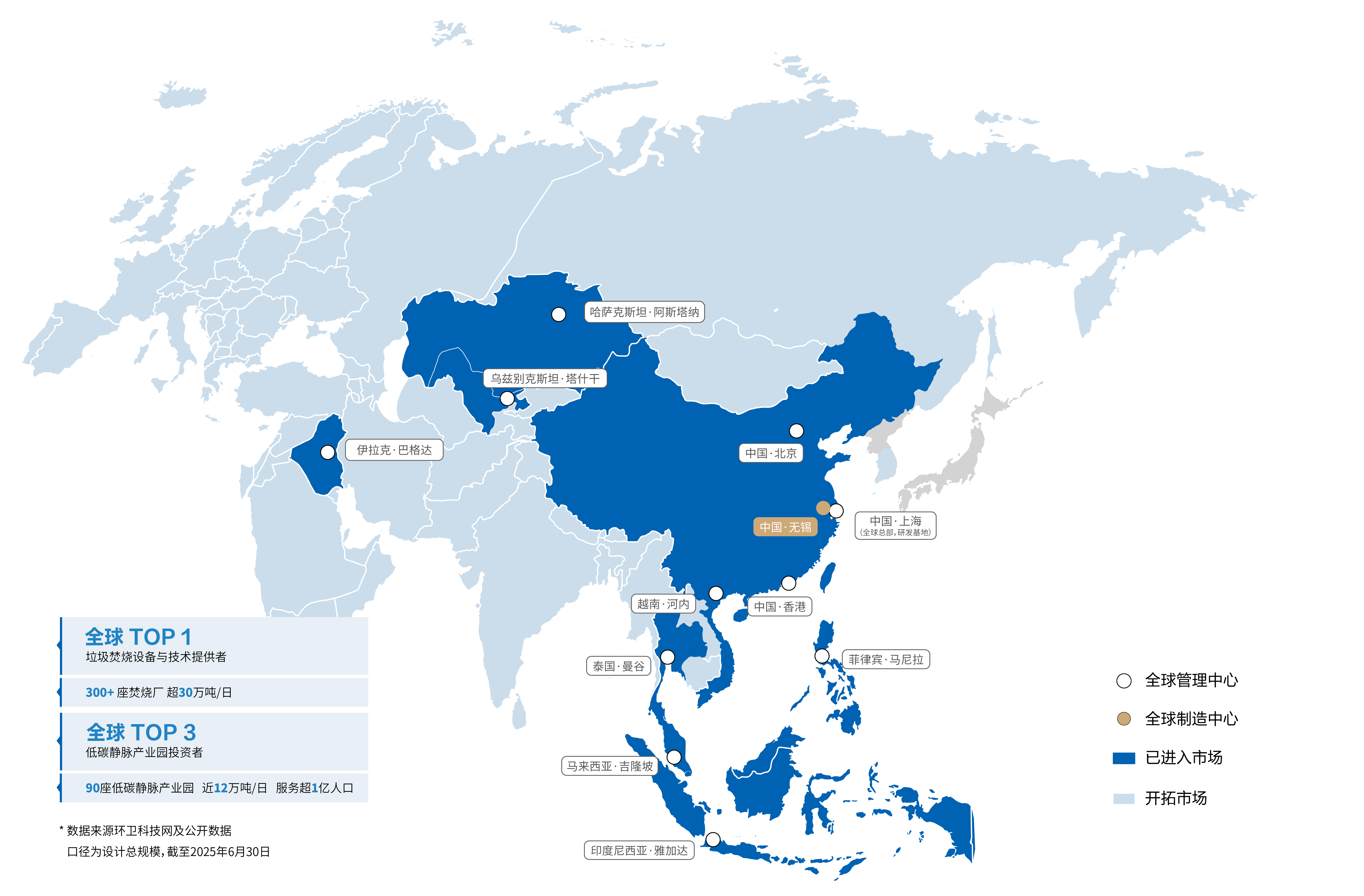 康恒环境聚焦东南亚,深入非洲,布局南美、欧洲、澳洲,以垃圾焚烧发电项目的投资运营为核心,结合设备成套及工程走出去,携手合作伙伴共建低碳静脉产业园,让固废治理成为中国又一张靓丽的国际名片,并在越南、马来西亚、印度尼西亚、泰国、菲律宾、乌兹别克斯坦、伊拉克、哈萨克斯坦设立代表处。